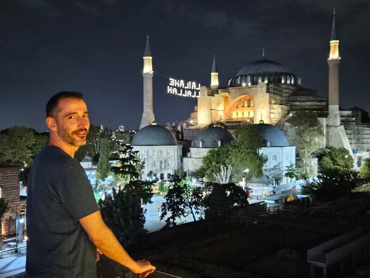 Mi consejo es atreverte a probar un poco de todo: el kebab más callejero, los dulces tradicionales, los sabores picantes del çiğ köfte y, por supuesto, disfrutar de una cena relajada frente a las cúpulas iluminadas de Santa Sofía.