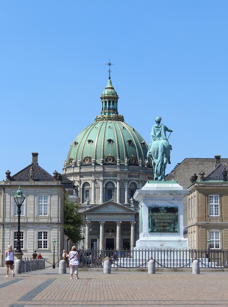 Por otro lado, desde aquí tienes unas vistas preciosas de la iglesia de Mármol (Marmorkirken), cuya gran cúpula verde se alza justo detrás del complejo. Es uno de los puntos más fotogénicos de Copenhague y una parada obligatoria para quienes disfrutan del detalle arquitectónico.