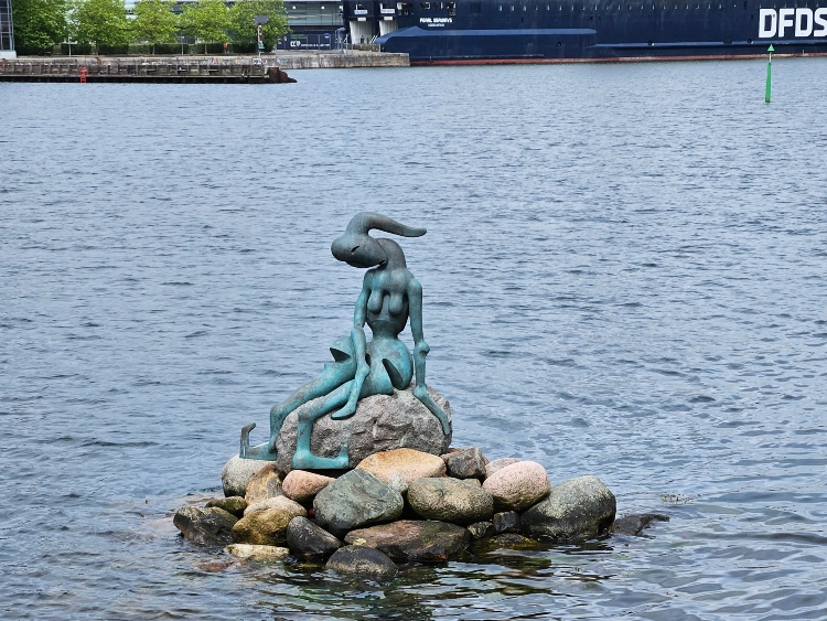 Si te apetece una versión más curiosa y moderna, a poca distancia se encuentra “La Sirenita genéticamente modificada”, una reinterpretación contemporánea que sorprende a muchos visitantes.