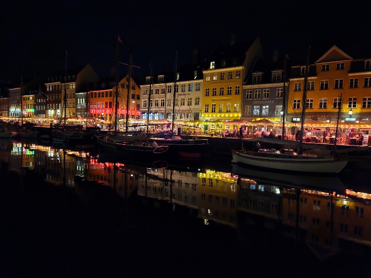 Por otro lado, es una zona ideal para hacer una pausa y disfrutar del ambiente local. Hay cafeterías, bares y restaurantes donde probar platos típicos daneses o simplemente sentarte al sol y observar el ir y venir de la gente y barcos. Si vas en verano, suele haber músicos callejeros y mucha vida alrededor, en invierno las luces y la decoración navideña crean una atmósfera mágica.