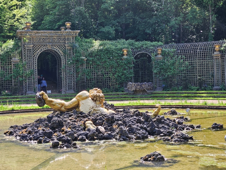 Estas fuentes no están encendidas todos los días, así que si tienes la oportunidad de verlas en funcionamiento, ¡no lo dudes! Por suerte, tuvimos la fortuna de coincidir con una de esas jornadas, así que pudimos ver varias en funcionamiento, como la famosa Fuente de Latona y la Fuente de Apolo, aunque no todas funcionan todo el rato.