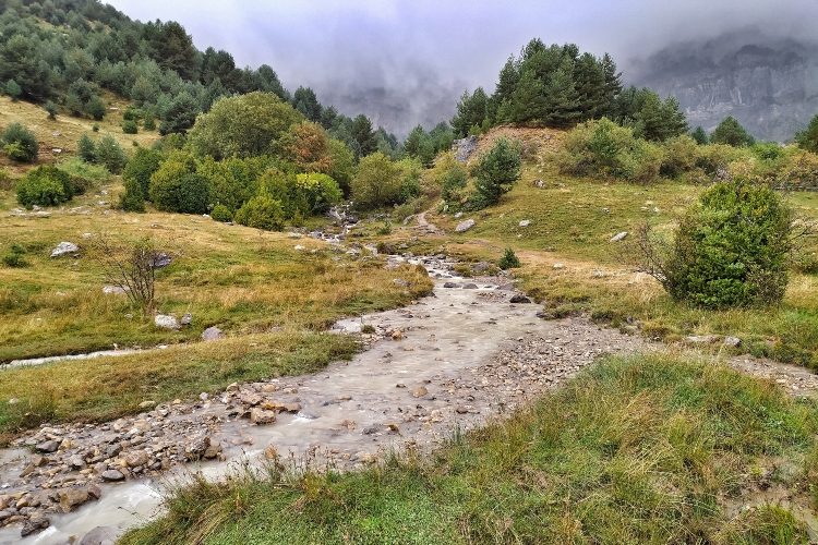 Transcurrido buena parte de marcha llegarás hasta un torrente llamado Barranco del Boj que baja directamente del Ibón de Piedrafita. Para mi esta parte fue la más bonitas de la ruta, a pesar de la lluvia que caía de vez en cuando, por suerte teníamos paraguas.