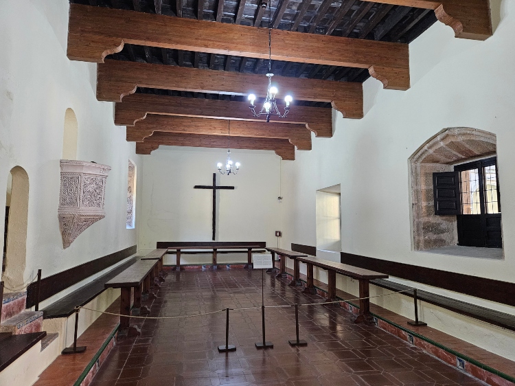 Luego pasamos al segundo claustro, que conecta con espacios más cotidianos del antiguo monasterio, como el refectorio (comedor de los monjes). A través de un pequeño balcón, accedimos a una de las partes más esperadas de la visita, los aposentos de Carlos V.