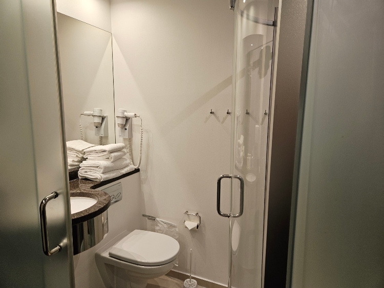 Las instalaciones del hotel se veían nuevas y bien cuidadas. La habitación, aunque no era muy grande, resultó acogedora y funcional. La cama era cómoda, el baño sencillo pero práctico, y lo mejor de todo: no se escuchaba ningún ruido. Después de un día caminando por la ciudad, agradecimos muchísimo el silencio y la sensación de descanso.